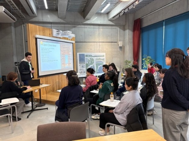In the afternoon program, our students gave presentations in English on their activities in the Tanise area of Totsukawa Village in Nara Prefecture, as well as on architectural design proposals for an auberge inspired by natural descriptions in the Manyoshu. Meanwhile, students from Illinois Institute of Technology presented architectural perspectives on the Grand Ring structure of Expo 2025 Osaka, Kansai, and introduced various national pavilions, including Japan’s, from the World’s Columbian Exposition held in Chicago in the 1890s. The program highlighted perspectives from both Japan and the United States.