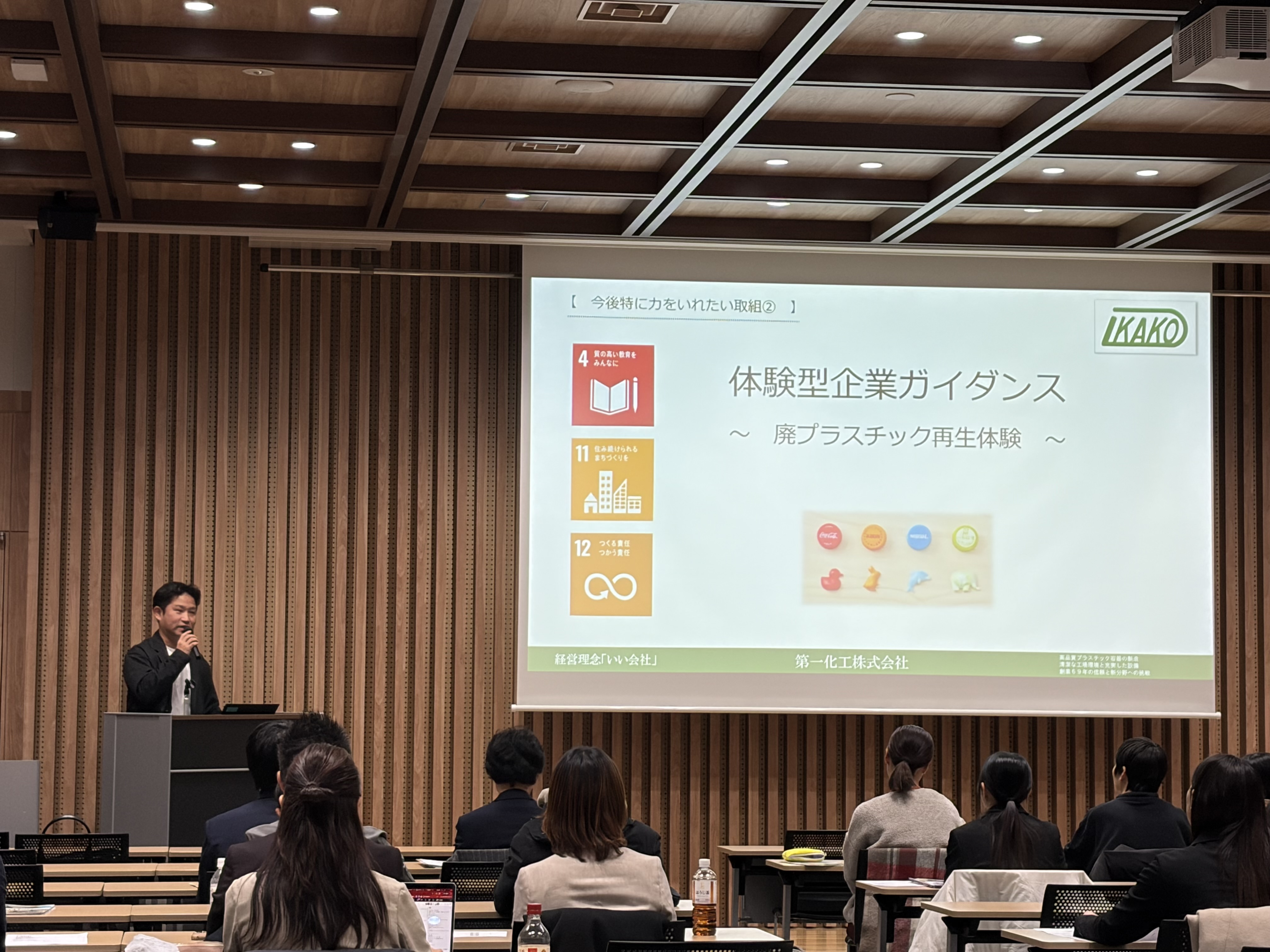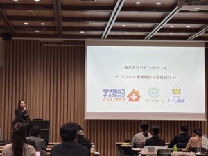 各企業の紹介やSDGsに関する取組等についてのショートプレゼンのあと、グループに分かれて自由に意見交換を行う交流会を行いました。