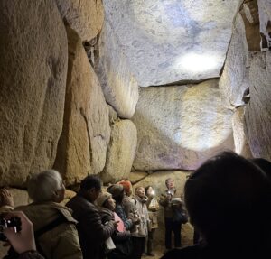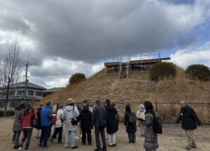 | ■矢田丘陵周辺(大和郡山~斑鳩)の古墳巡り (現地講義) [講師]奈良県立橿原考古学研究所 米川仁一 氏 [開催]2026年1月22日 矢田丘陵周辺の大和郡山から斑鳩にかけて、古墳や関連施設10か所を巡り、地域ごとの古墳文化の特徴を学びました。前期から後期に至る古墳の構造や立地、副葬品の違いを現地で確認し、地域性と時代変化を比較しました。藤ノ木古墳では被葬者像をめぐる議論にも触れ、古墳時代後期の政治背景への理解を深める機会となりました。 |