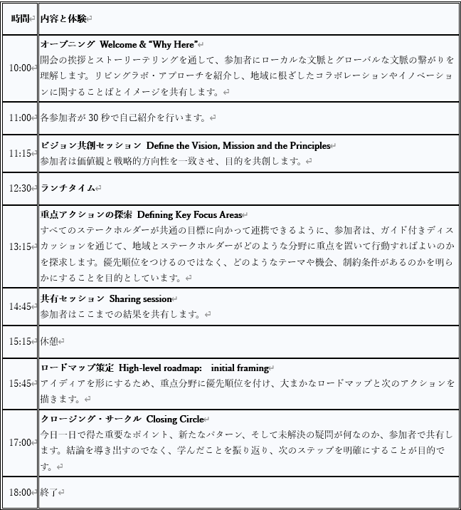 本講座は、地域が抱える課題と企業の経営資源を掛け合わせ、ビジネスの手法を用いて持続可能な社会の解決策を共創する実践型ワークショップです。講師には、Future Food Institute(FFI)のAlessandro氏を迎え、地域に根ざした持続可能な食文化をどのように形成していくのか、その実践事例と考え方を学びます。FFIは、人を地球を中心に据え、地域と世界をつなぐ持続可能なリビングラボの構築を支援してきた国際的な機関であり、本講座ではその知見をもとに、地域共創の可能性を探ります。