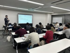 | ■褐色・ベージュ脂肪細胞の調節機能と肥満予防効果 [講師]奈良女子大学 小栗 靖生 氏、髙地 リベカ 氏、菅 尚子 氏、宮本 真菜 氏 [開催]2026年1月23日 栄養学の視点から科学的根拠に基づく減量と肥満予防について解説が行われました。食品交換法や脂肪細胞の働き、適正BMIの重要性、臓器ごとのエネルギー代謝を学び、褐色・ベージュ脂肪細胞の役割や食事誘発性熱産生について理解を深めました。朝食やたんぱく質接種、ゆっくり食べる習慣の有効性も紹介しました。後半はInBodyやSATシステムを用いた実習を行い、自身の体組成と栄養摂取状況を確認しました。 |