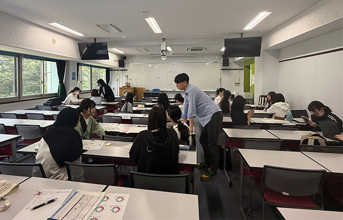 万葉歌碑・史跡ワークショップに参加する留学生に対して、奈良女子大学周辺の万葉歌碑を巡る観光ルートを紹介した街歩きについて振り返り、検討するワークショップを開催しました。