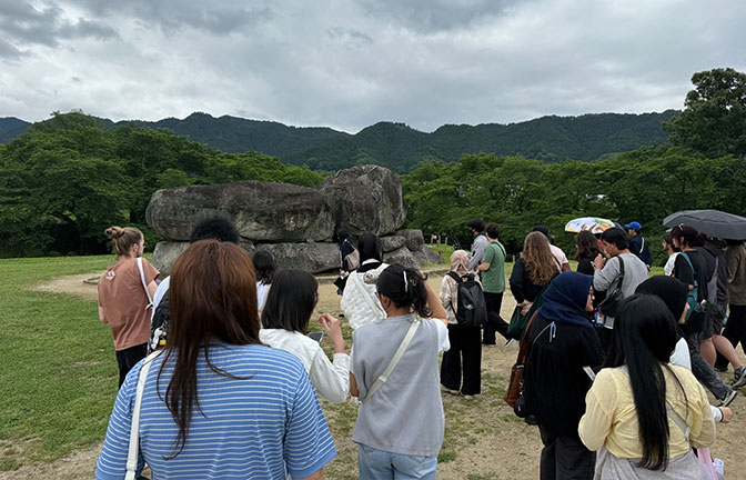 万葉歌碑・史跡ワークショップに参加する留学生に対して、万葉集を中心とした日本の古代文化に触れてもらうため、明日香村の奈良県立万葉文化館や石舞台古墳、飛鳥寺に訪れました。