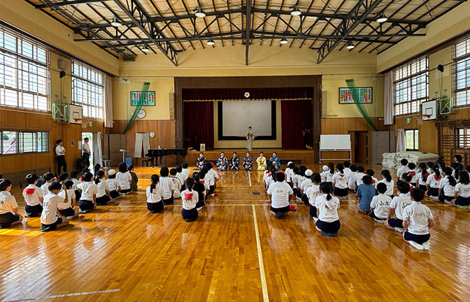 奈良女子大学附属小学校3年星組の児童が墨運堂の「墨の資料館」を訪れ、にぎり墨体験を通して墨づくりの方法や歴史について学習した。その後、併設の永楽庵にて、墨を用いて大きな紙に自分らしい字で名前を書きました。