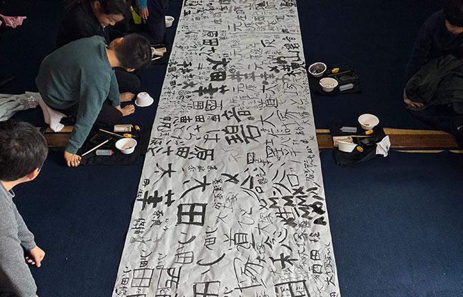 - 奈良女子大学附属小学校3年星組の児童が墨運堂の「墨の資料館」を訪れ、墨づくりの方法や歴史について学習した。その後、併設の永楽庵にて、墨を用いて大きな紙に自分らしい字で名前を書きました。