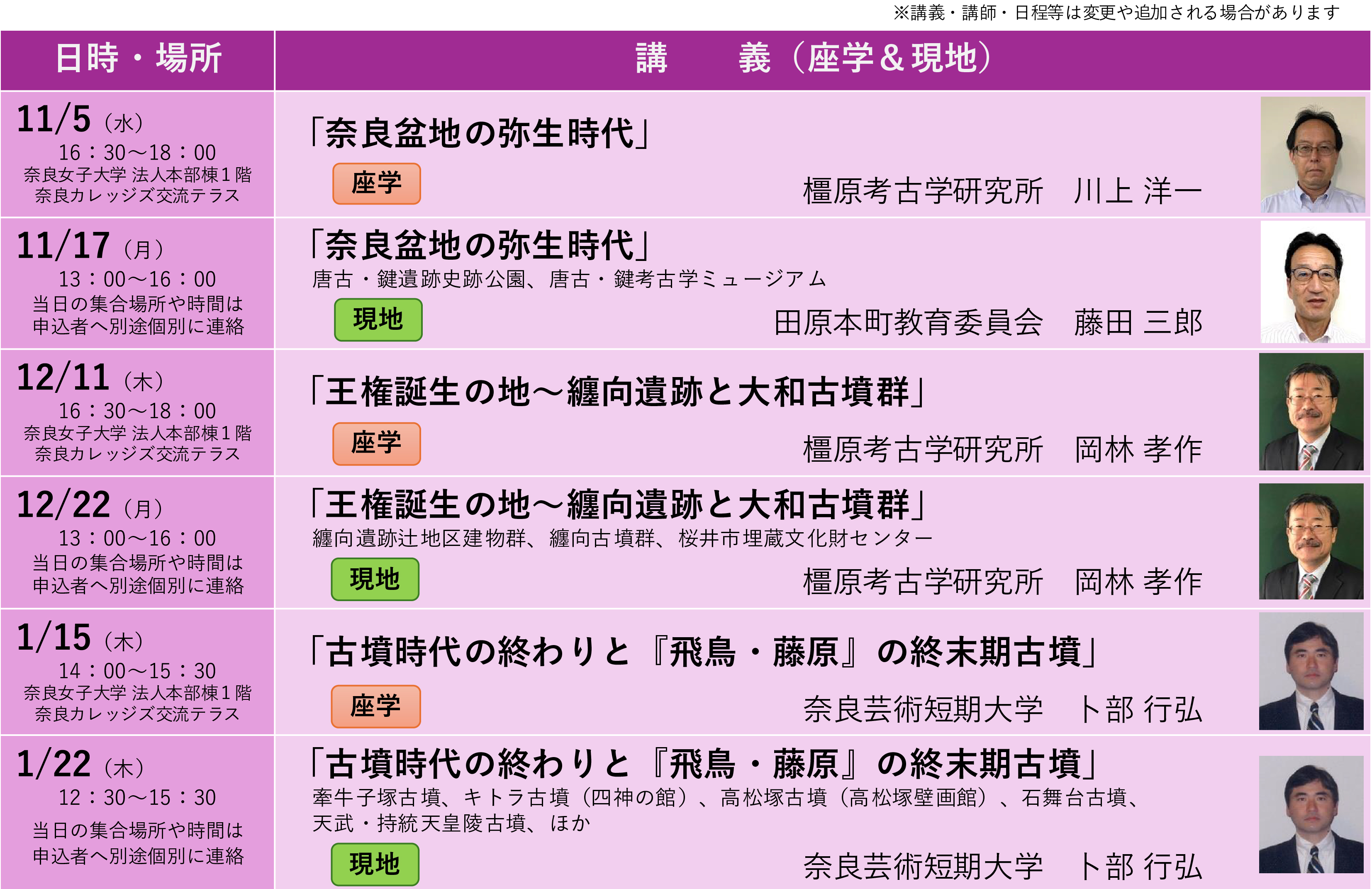 文化財についての専門的知識を持った運転手やガイドが現地を案内し、その歴史や由緒を解説してくれる、そんなバスやタクシーは素敵ではないでしょうか?そのような思いで、奈良の文化財を学び、現地を巡る講座を企画しました。ぜひ奈良の寺社・遺跡・古墳をはじめとした歴史と由緒に触れてください。